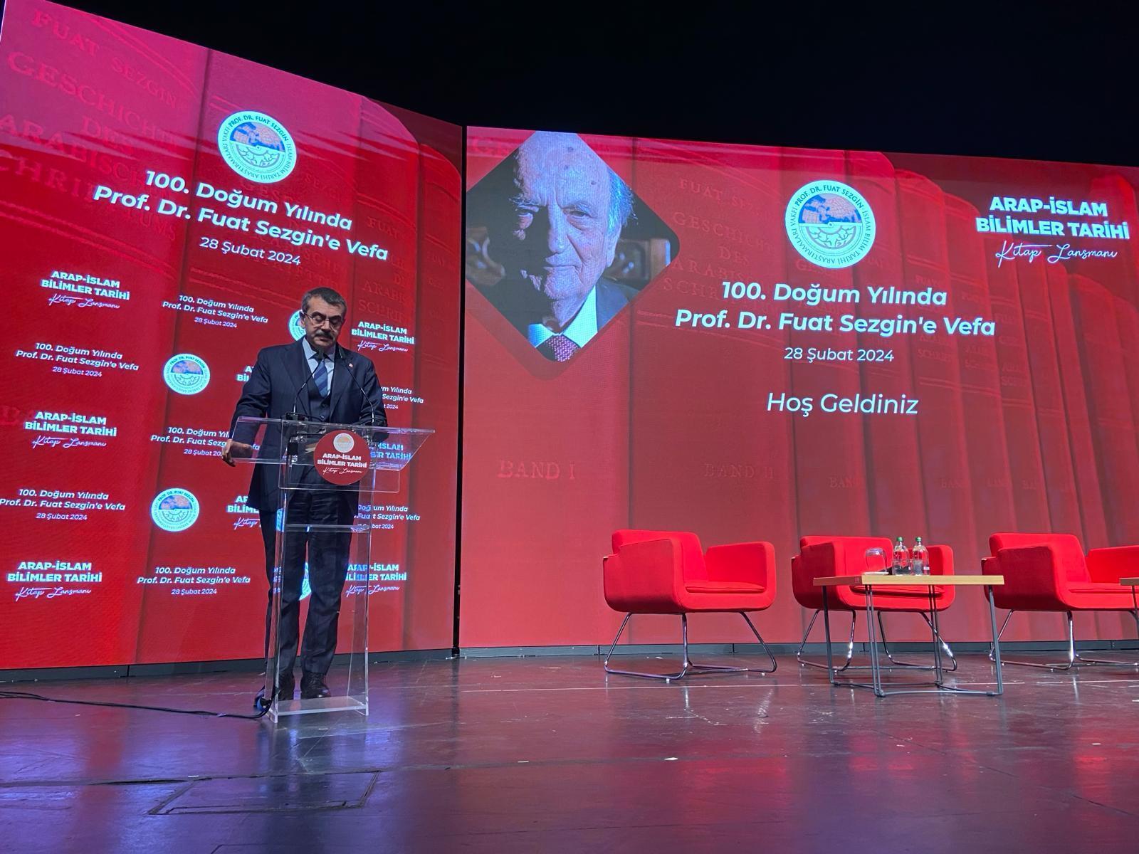 İstanbul’da Atatürk Kültür Merkezi’nde yapılan İslam tarihi, bilim ve teknoloji alanında çalışmalarıyla tanınmış Prof. Dr. Fuat Sezgin anısına “100’üncü Doğum Yılında Vefa” ve “Arap-İslam Bilimler Tarihi Kitap Lansmanı” etkinliğine katılan Milli Eğitim Bakanı Yusuf Tekin şunları söyledi: