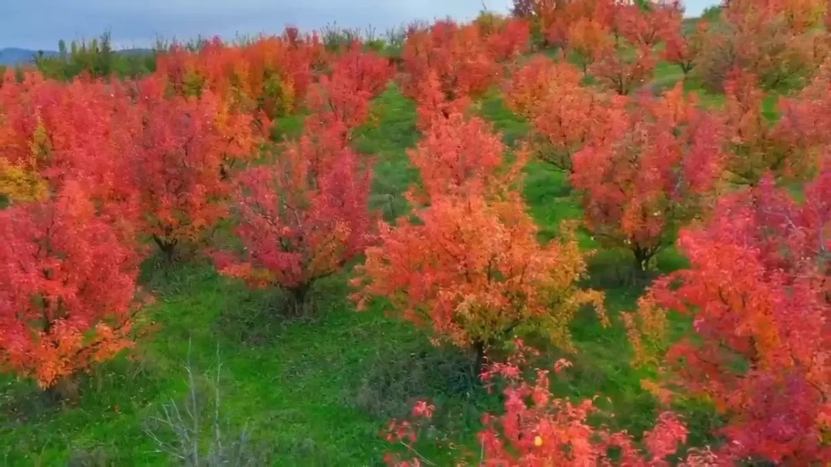 BURSA'nın merkez dışındaki en büyük, Güney Marmara'nın ise nüfus bakımından ikinci büyük ilçesi olan İnegöl'de, sonbahar renkleri ile güzel görüntüler oluştu. Sarı ve yeşilin tonlarına bürünen meyve bahçeleri dronla havadan görüntülendi.