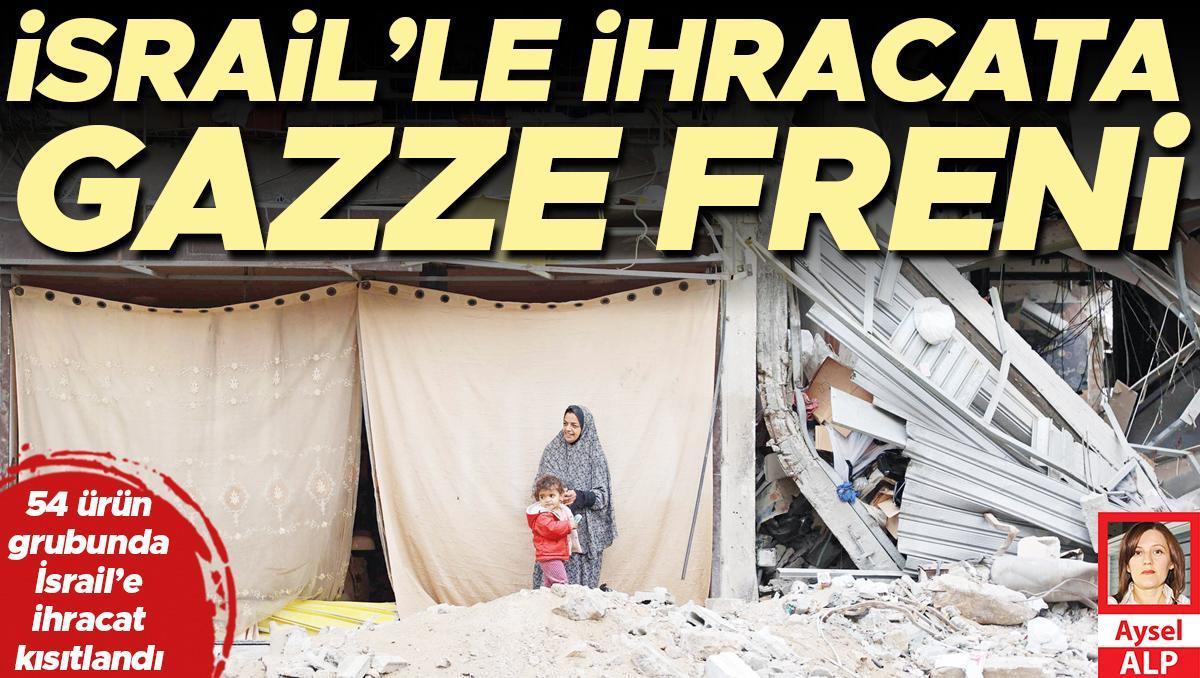 TÜRKİYE, 9 Nisan itibarıyla çimentodan alüminyuma, uçak yakıtından motor yağına kadar 54 ürün grubunda İsrail’e ihracatı kısıtladı. Türkiye’nin İsrail’e askeri amaçla kullanılabilecek herhangi bir ürün veya hizmetin satışına izin vermediğine dikkat çeken Ticaret Bakanlığı, konuya ilişkin açıklamasında “(Karar) İsrail, uluslararası hukuktan kaynaklanan yükümlülükleri çerçevesinde, Gazze’de derhal ateşkes ilan edene ve Gazze Şeridi’ne yeterli miktarda ve kesintisiz insani yardım akışına izin verinceye kadar yürürlükte kalacaktır. Uluslararası camianın tüm üyelerine çağrımız, İsrail’in uluslararası hukuktan kaynaklanan yükümlülüklerine uymasını teminen, üzerine düşenleri yerine getirmeleridir” ifadelerine yer verdi.