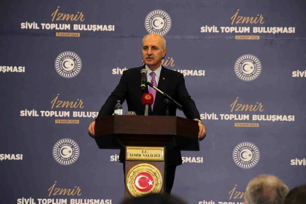İzmir'de sivil toplum buluşmasında konuşan Türkiye Büyük Millet Meclisi (TBMM) Başkanı Numan Kurtulmuş, "Terör örgütleri vasıtasıyla hizaya sokulmaya çalışılan bu coğrafyaya inat terörün sıfırlandığı bir Türkiye'yi oluşturmak mecburiyetindeyiz. Türk'ün Kürt'ün birbirine karşı en ufak düşmanlığı yoktur, bunun ispatı da İzmir şehrinin kendisidir" dedi.