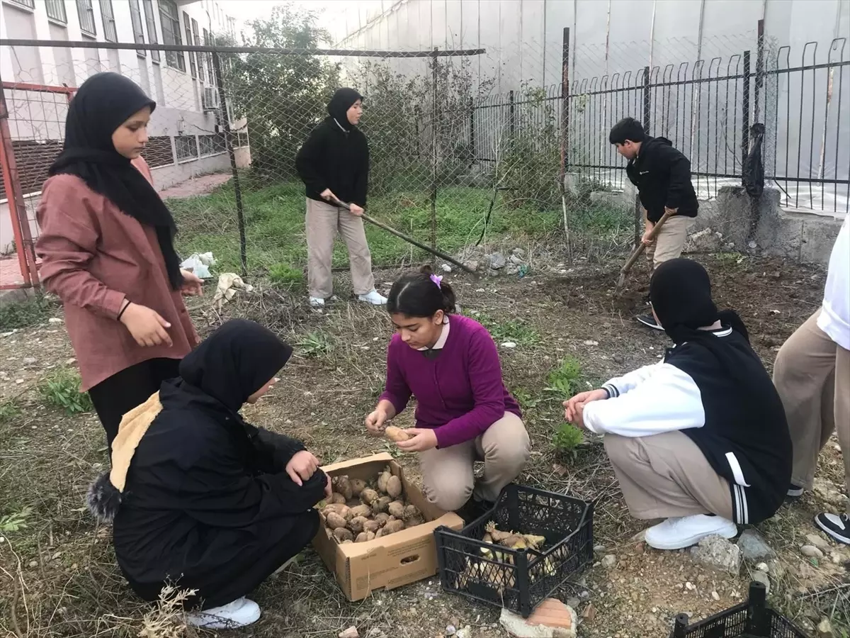 Mersin'in Bozyazı ilçesinde Durmuş Tufan Anadolu İmam Hatip Lisesi öğrencileri, "Okulumda Sağlıklı Besleniyorum Projesi" kapsamında patates tohumu ekti.