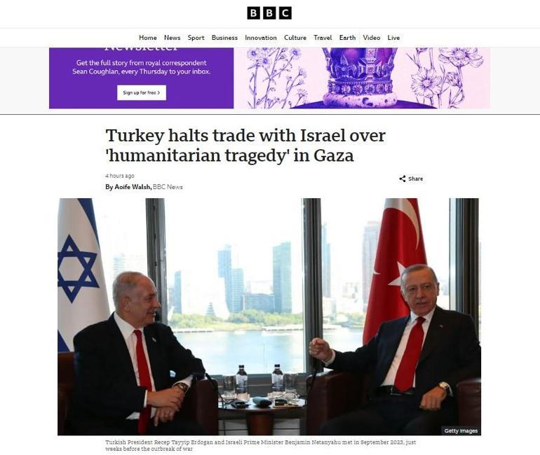 BBC de iki ülke arasındaki ticaretin geçtiğimiz yıl neredeyse 7 milyar dolar değerinde olduğuna dikkat çekti ve Cumhurbaşkanı Erdoğan'ın İsrail saldırılarının başladığı 7 Ekim'den bu yana Tel Aviv yönetimini sert sözlerle eleştirdiğini hatırlattı.