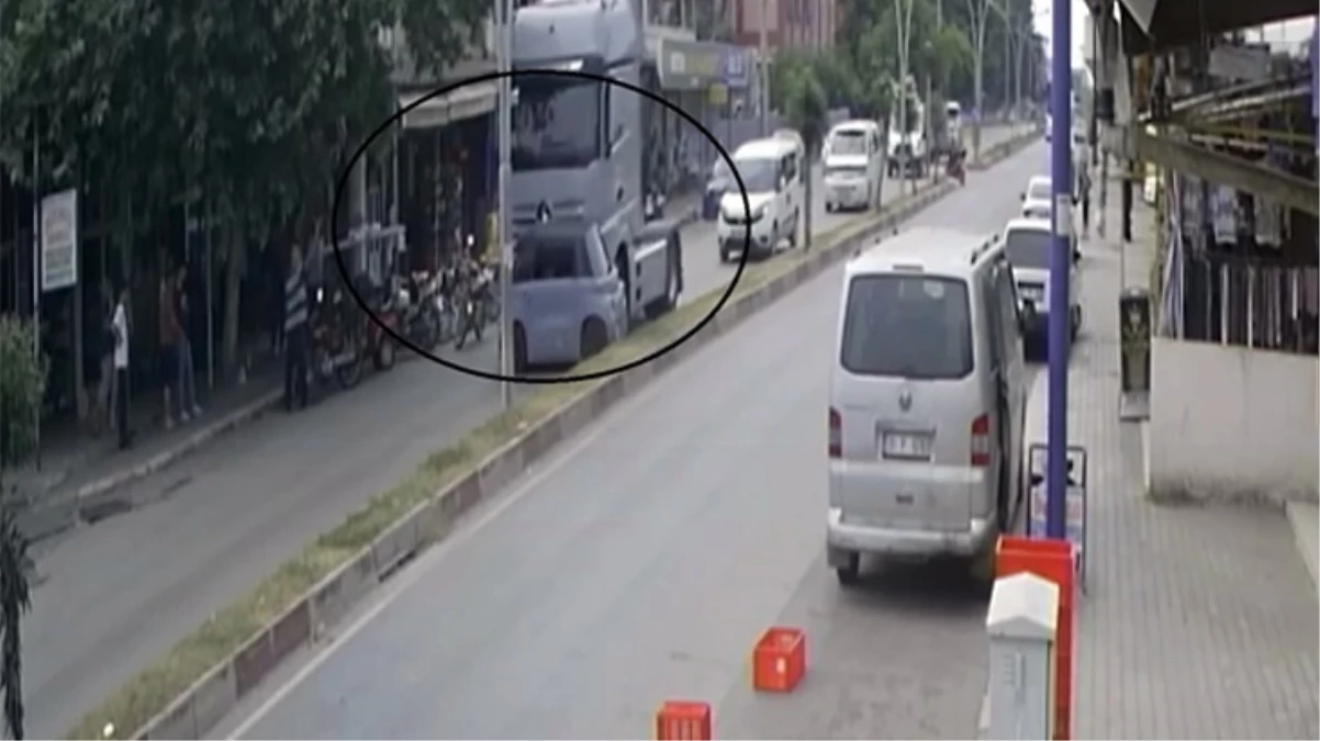 Kaza, Dörtyol ilçesi Özerli Mahallesi'nde yaşandı. Cadde üzerinde ilerleyen tır, aynı istikamette seyir halinde olan mini elektrikli aracı önüne alarak sürüklemeye başladı. Tırın, mini aracı oyuncak araba gibi metrelerce sürüklediği anlar güvenlik kamerasına yansıdı.