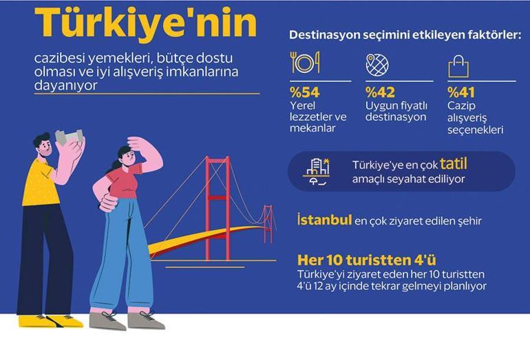 * Visa 2023 Global Seyahat Trendleri Araştırması’na göre ülkemizi ziyaret eden yabancı turistler seyahat başına ortalama 2 bin 900 harcıyor.