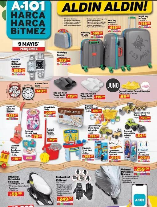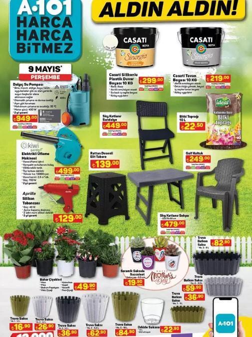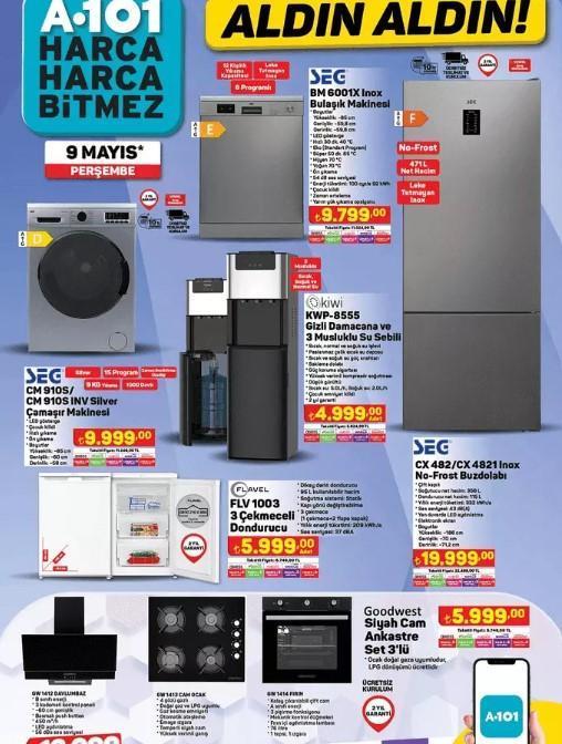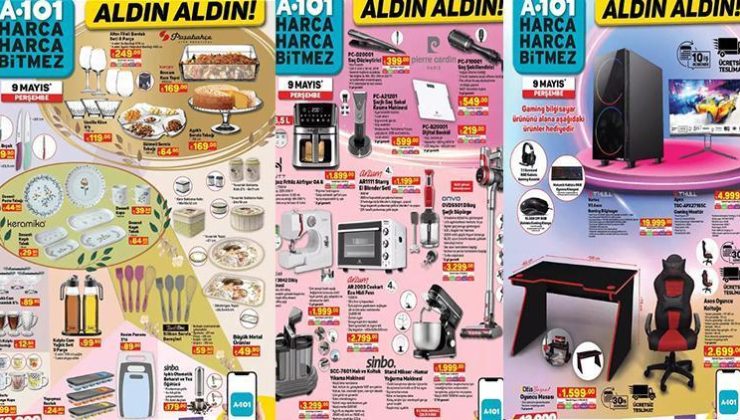 A101 aktüel bu hafta da geniş ürün yelpazesiyle evlerinize geliyor. A101 Anneler Günü özel kataloğu ile LAV marka cam ürünleri satışa çıkarıyor. Ayrıca dikey süpürge, hamur makinesi, saç şekillendirme gibi pek çok ürün a101.com.tr a101 online alışveriş ve marketlerden temin edilebilecek. A101 aktüel 9 Mayıs 2024 içerisinde aynı zamanda; English Home Çift Kişilik Nevresim Takımı 599 TL, English Home Tek Kişilik Nevresim Takımı 499 TL, Natural Fırfırlı Yatak Örtüsü Seti 749 TL, Yatak Odası Yolluk Seti 799 TL, Bayan Desenli Kısa Kollu Pijama Takımı 219 TL’den satışta olacak. Peki, A101’de bu hafta neler var? İşte, a101 aktüel ürünler kataloğu 9 Mayıs 2024