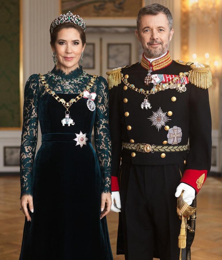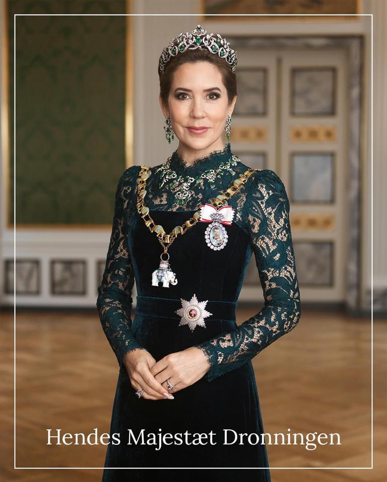 Kraliyet çiftinin resmi fotoğrafı geçen cuma günü yayınlandı ve Avustralya doğumlu kraliçenin kralın yanında durduğu görüldü. Kraliçe Mary koyu yeşil kadife ve dantel bir elbisenin yanı sıra Danimarka kraliyetinin en kıymetli tacı ve mücevherleriyle poz vermişti.