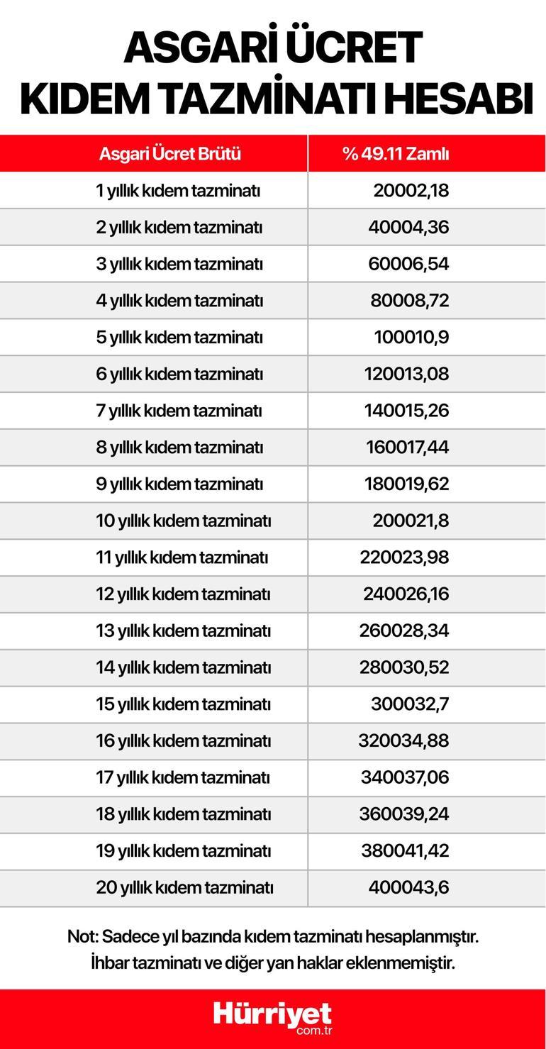 10 yıldır asgari ücretli olarak çalışan birisi işten çıkarılması halinde 200 bin 21 lira kıdem tazminatı alabilecek. Kıdem tazminatının yanında varsa ihbar tazminatı, izin günleri ve ek ödemelerden kaynaklanan haklarını da talep edebilecek.