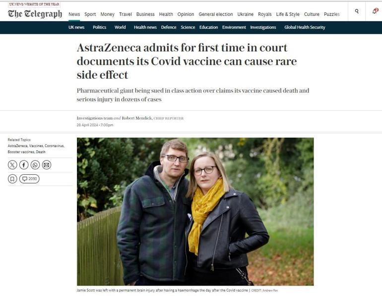 2021 yılının Nisan ayında olduğu Kovid aşısı sonrası beyninde pıhtı atan ve beynindeki kalıcı hasar nedeni ile çalışamayacak hale gelen iki çocuk babası Jamie Scott’un geçtiğimiz yıl ilaç devi AstraZeneca’ya dava açtı.