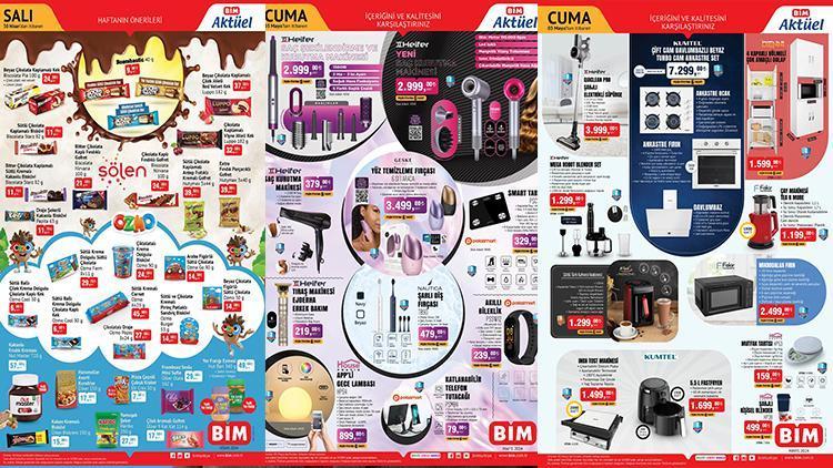 Bim aktüel 30 Nisan 2024 kataloğu salı günü raflarda yerini alacak. Aynı zamanda BİM aktüel 3 Mayıs 2024 kataloğu da yayımlandı. Bim’de bu hafta cuma elektronik ev aletleri, mutfak eşyaları, ev tekstili ürünleri ve bahçe ürünleri yer alıyor. Bim’in ürünleri aynı zamanda bim online alışveriş sitesi bim.com.tr adresinden de temin edilebiliyor. Bim aktüel 3 Mayıs 2024 kataloğu ile ; Heifer Saç Kurutma Makinesi 379 TL, GESKE 6’sı 1 Arada Yüz Temizleme Fırçası 3.499 TL, Polosmart Smart Tartı 329 TL, Kumtel Çift Cam Davlumbazlı Beyaz Turbo Cam Ankastre Set 7.299 TL, 4 Kapaklı Bölmeli Çok Amaçlı Dolap 1.599 TL’den satışta olacak. Peki, Bim’de bu hafta neler var? İşte, BİM aktüel ürünler kataloğu 30 Nisan- 3 Mayıs 2024!