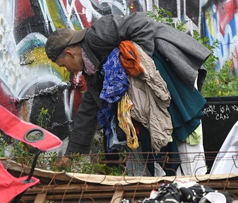 Willison; çöplerden bulduğu kıyafetleri denedi… Üzerine olanları bütün varlığını taşıdığı market arabasına koyarak hayatına döndü.