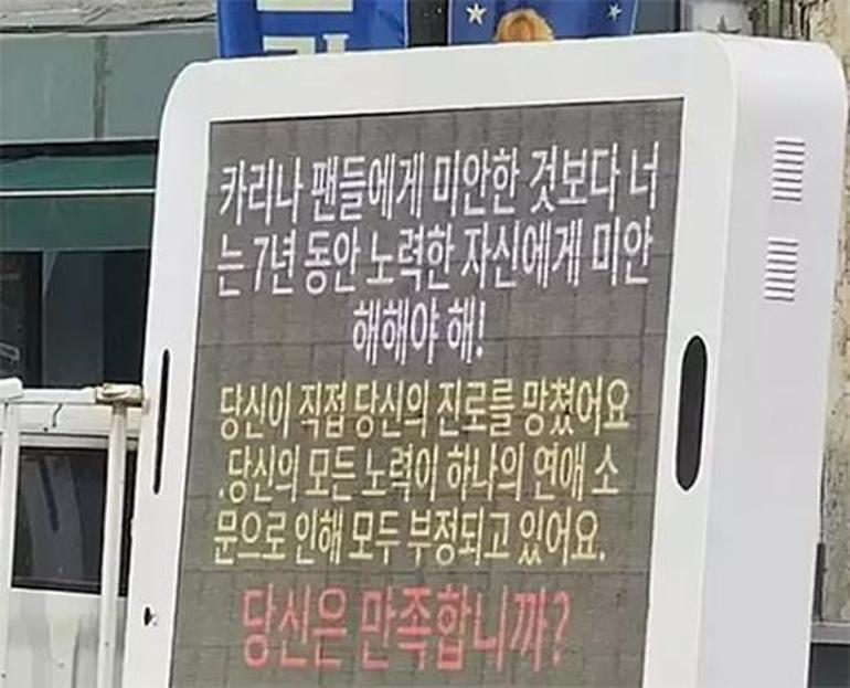Bunu öğrenen hayranları ise genç şarkıcının birlikte çalıştığı plak şirketinin binası önüne götürdükleri bir dijital pano aracılığıyla onu protesto etti. Genç şarkıcıya ‘Bizim sevgimiz sana yetmedi mi?’ diye sordu.