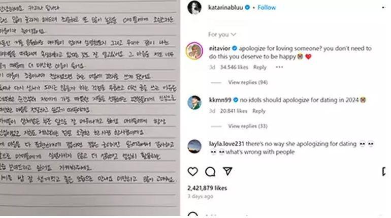 Karina kendi el yazısıyla yazdığı ve Instagram hesabında paylaştığı mesajında gerçekten de aşık olduğu için hayranlarından özür diledi.