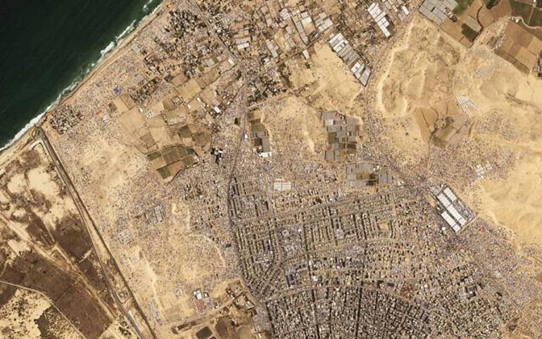 AP tarafından analiz edilen Planet Labs PBC görüntüleri, çadır yerleşkesinin 16 Nisan’da Khan Younis’in hemen batısında tamamen inşaata başladığını gösteriyor. Pazar günü çekilen görüntüler, çadır yerleşkesinin o zamandan bu yana büyüdüğünü gösteriyor.