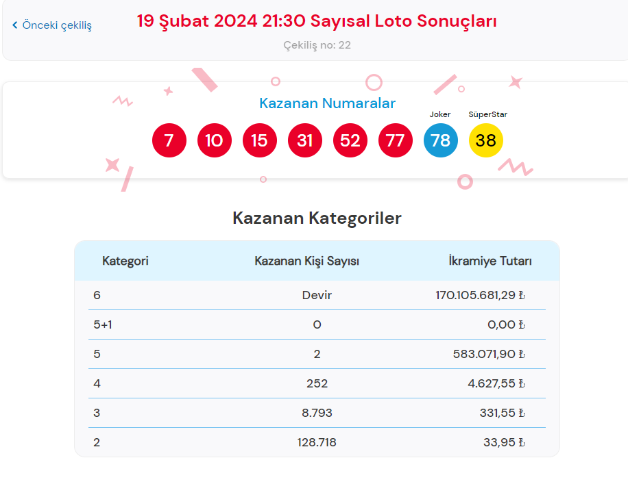 19 ŞUBAT 2024 ÇILGIN SAYISAL LOTO SONUÇLARI AÇIKLANDI