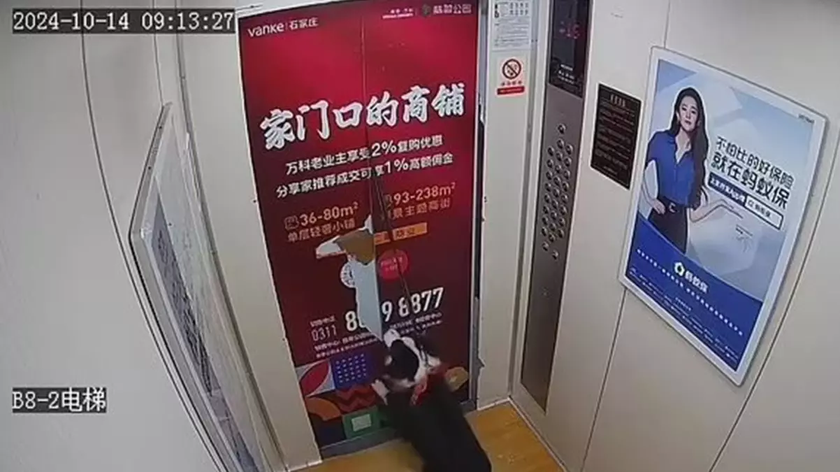 Çin’in Shijiazhuang kentinde yaşanan olay, apartmanın güvenlik kameralarına an be an yansıdı. 14 Ekim tarihinde kaydedilen görüntülerde, bir köpeğin asansör kapısına sıkışan tasması nedeniyle ölümden döndüğü anlar yer aldı.
