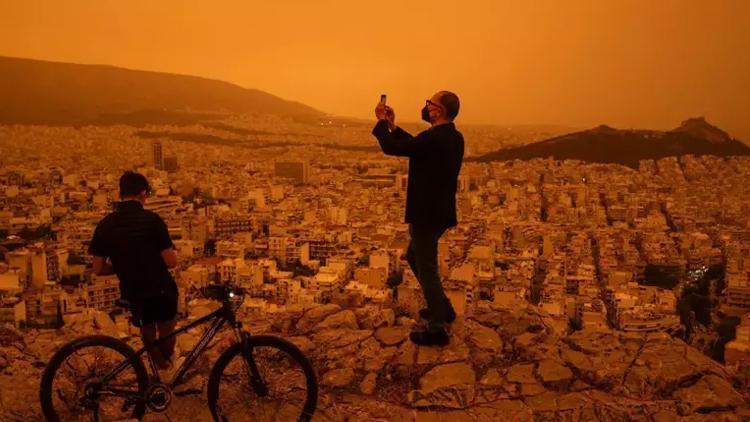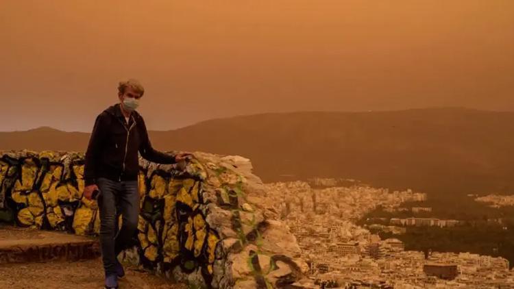 Kuzey Afrika’dan gelen toz bulutlarının etkisiyle Yunanistan’ın başkenti Atina’da gökyüzü turuncu bir renge büründü. Meteoroloji, Marmara ve İç Anadolu Bölgesi’nde beklenen toz taşınımı nedeniyle görüş mesafesinde düşme, hava kalitesinde azalma ve ulaşımda aksamalar gibi olumsuzluklara karşı tedbirli olunması uyarısı yaptı. CNN TÜRK Meteoroloji Danışmanı Prof. Dr. Orhan Şen de 3 gün etkili olacak toz taşımı nedeniyle yaşlılar ve kronik hastalığı olanlar için maske uyarısında bulundu.
