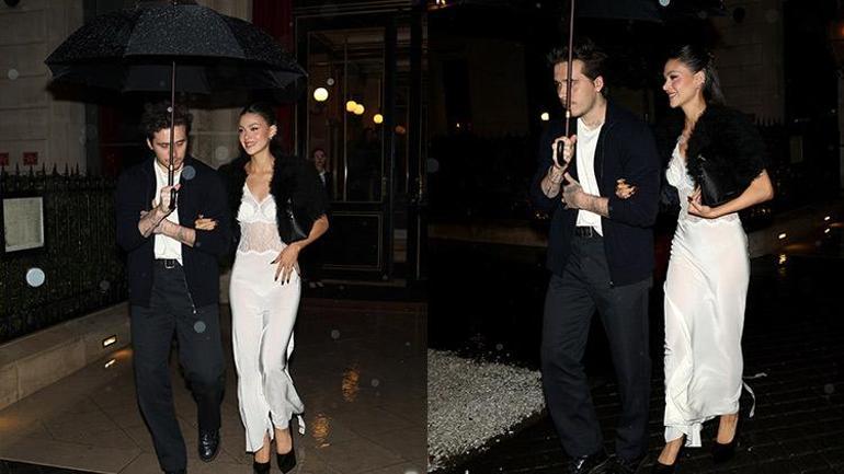 Paris yağmuruna yakalanan ünlü çift yemek çıkışı görüntülendi. Victoria Beckham baştan aşağı siyahlara bürümüş, her zamanki sadece şıklığını sergilerken David Beckham da koyu lacivert takım elbisesiyle ondan geri kalmadı.