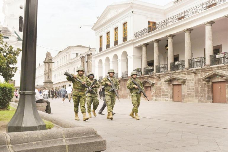 Ekvador’un başkenti Kito’da Başkanlık Sarayı etrafında askerler sürekli devriye görevi yapıyor. Okullar ve alışveriş merkezleri de büyükşehirlerde kapatıldı.