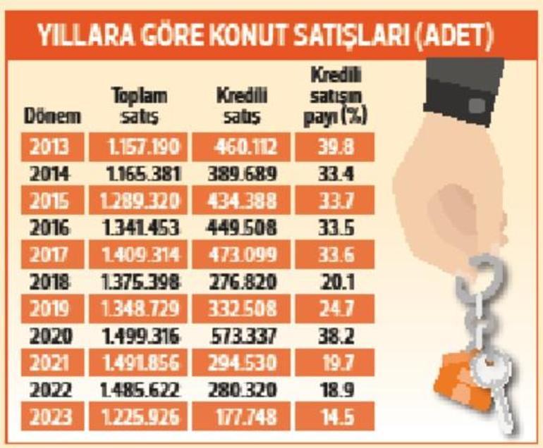 2023 yılında, Bankacılık Düzenleme ve Denetleme Kurumu (BDDK) tarafından alınan kararla, yatırım amaçlı konut alımlarında kredi muslukları kısıldı. ‘Kendisinin, eşinin ya da 18 yaşından küçük çocuğunun adına ev olanlar, yeni bir ev almak istediklerinde evin değerinin yüzde 22.5’i kadar kredi alabilir’ denildi. İşte bu sınırlama, kredili satış rakamlarına yansıdı. Aralık ayında olduğu gibi, yıl toplamında da kredili satışlarda dip görüldü.