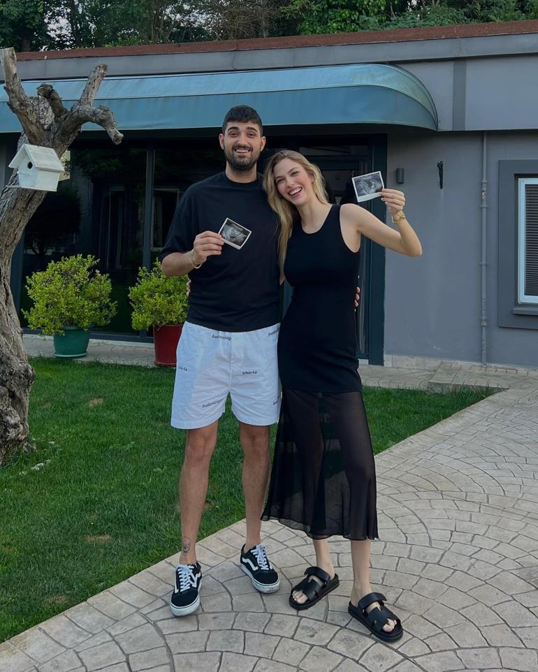 Ahmet Kural “Çok heyecanlıyız” mesajını biberon ve bebek emojisi ile süsleyerek müjdeli haberi duyurdu. Çift, birlikte verdikleri pozu Instagram’da takipçileri ile paylaştılar.