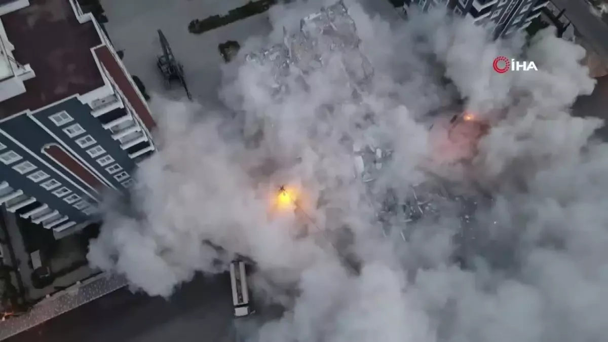 Adıyaman’da 9 katlı hasarlı binanın yıkım anı böyle görüntülendi