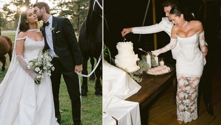 Mutlu çift tören için ABD, Georgia’daki bir çiftliği seçti. Gelin Natalie de Macye Wysner tarafından tasarlanan bir gelinlik giydi.