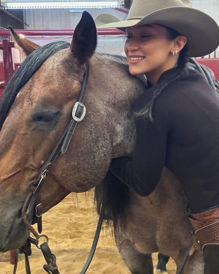 Artık yaptığı paylaşımlarda sevgilisinin atlarıyla birlikte verdiği tatlı pozlar olan Hadid, kovboy modasına uygun şekilde, baştan aşağı denim takımlar, jean üstler, püsküllü yelekler ve kocaman kovboy şapkalarıyla karşımıza çıkıyor.