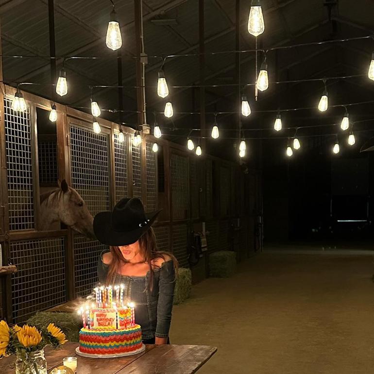 Ünlü model fotoğraflarını aylar sonra paylaştığı doğum gününü de sevgilisi Adan Banuelos’un çiftliğinde kutladı. Bir avuç yakınlarının katıldığı samimi kutlama çiftlikteki kocaman ahırlardan birinde gerçekleşti. Ahırın içine asılan ışıklar ve süslerle çevrili aşıklar Bella Hadid pastasındaki mumları üfledikten sonra bolca öpüşüp sarılarak ünlü modelin yeni yaşını kutladı.