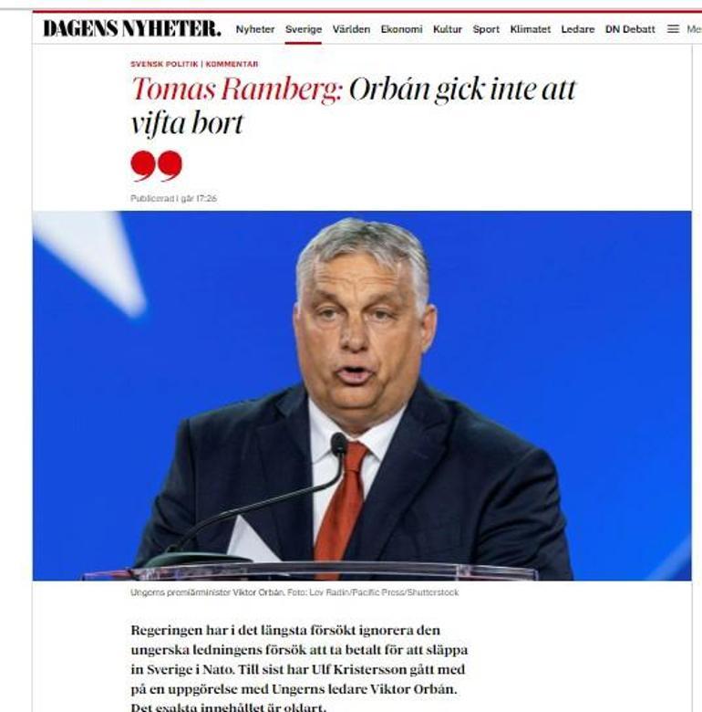 Orban, Ulf Kristersson ile İsveç’in NATO üyeliğini görüşmek istediğini belirtirken, teklif İsveç’te bir ‘şantaj’ olarak algılandı. İsveç Dışişleri Bakanı Tobias Billström Orban’ın teklifini ‘müzakere edilecek bir şey kalmadı‘ diyerek nazik bir şekilde reddetti.