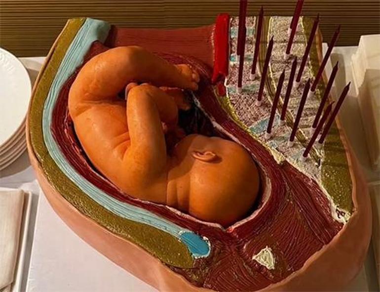 Bu arada hemen belirtelim ki bu doğum günü pastası, sanatçının Mucize Yolculuk adını verdiği ve bir bebeğin anne karnındaki gelişimini gözler önüne seren bir dizi bronz heykelden esin kaynağını aldı görünüşe göre.