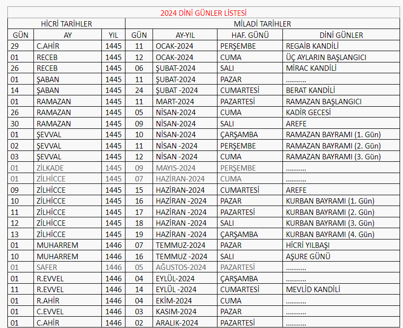 Recep ayı 13. günü:24 Ocak 2024 Çarşamba