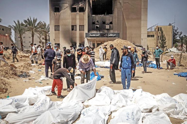 Filistinli sivil savunma ekipleri, önceki gün İsrail ordusunun şubat ayında baskın yaptığı Han Yunus’taki Nasır Hastanesi’nin kompleksinde bulunan toplu mezarlardan 310 ceset çıkarıldığını açıkladı. El Şifa Hastanesinin bahçesinde ise toplu gömülmüş 30 ceset bulunduğu belirtildi. Hamas yönetimi, mezarların baskında infaz edilen Filistinlilerin gömülmesi için İsrail ordusu tarafından kazıldığını belirtti. İsrail ordusu ise iddiayı reddederek operasyonlar sırasında, “rehinelerin ve kayıp kişilerin bulunmasına yönelik çalışmalar” kapsamında Filistinlilerin bölgede gömdüğü cesetlerin “incelendiği” belirtildi.