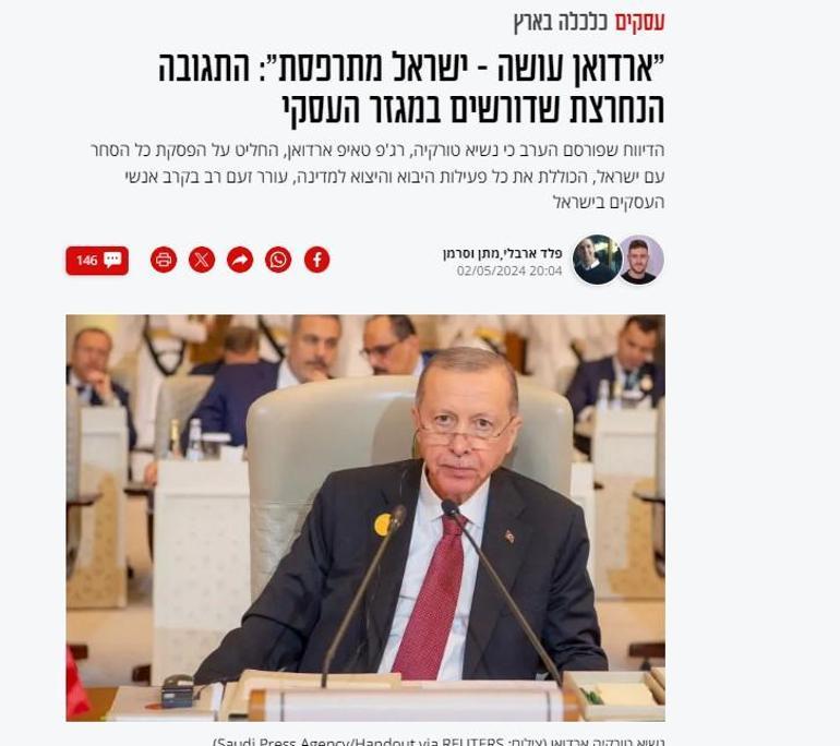 Maariv gazetesi ‘Erdoğan adım atıyor, İsrail kambur duruyor’ başlıklı haberinde, Türkiye’nin kararının İsrailli iş insanları arasında öfkeye neden olduğunu yazdı.
