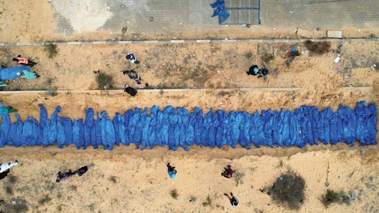 – Güney Afrika ekibinden Adila Hassim toplu mezarların fotoğraflarını yargıçlara göstererek, İsrail’in kullandığı bombaların etkisinden ve güvenli olarak ilan edilen alanların bile bombalanmasından söz etti. Hassim’in gösterdiği fotoğrafların ‘Anadolu Ajansı’ imzalı olması dikkat çekti. AA Foto Muhabiri Fadi Alwhidi tarafından çekilen ve kanıt olarak sunulan fotoğrafta, Gazze’de 23 Aralık’ta Beyt Lahya kentinde enkaz altından çıkarılan cansız bedenlerin, Endonezya Hastanesi’nin yakınında hazırlanan toplu mezara defnedildiği görülüyor.
