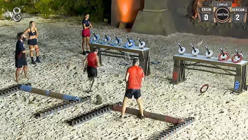 Bu sezon SMS oylamasının olmadığı Survivor All Star’da haftanın eleme adayları Doğukan, Ersin ve Sercan olarak belirlenmişti. Yeni kurala göre konseylerde belirlenen eleme adayları performans oyunu oynayacak. Elenen yarışmacının belirleneceği Survivor eleme düellosunda ilk olarak Sercan-Ersin mücadelesi yaşandı. 5 olan yarışmacının adaylığının düşeceği oyunda, Murat Ceylan istatistiği yüksek olanın avantajlı olacağını hatırlattı. Hız, denge ve atışların ön planda olduğu parkurda ilk düelloda Sercan Ersin’i 5-0 yendi. Böylece Sercan’ın eleme adaylığı düştü.