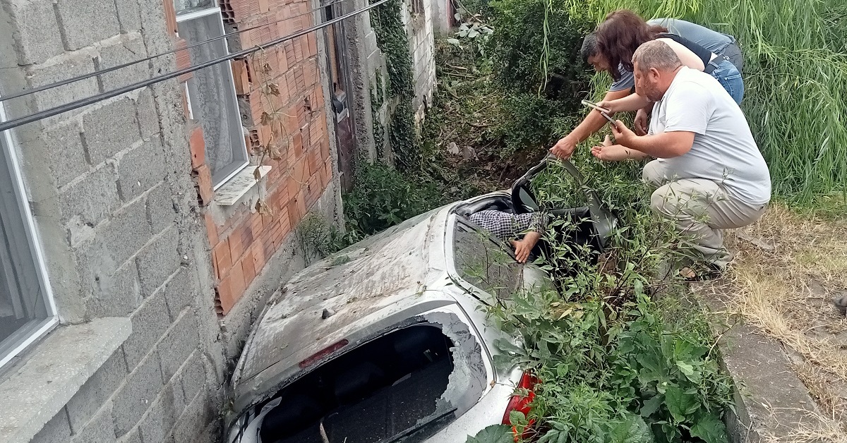 Kontrolden çıkan otomobil evin bahçesine devrildi