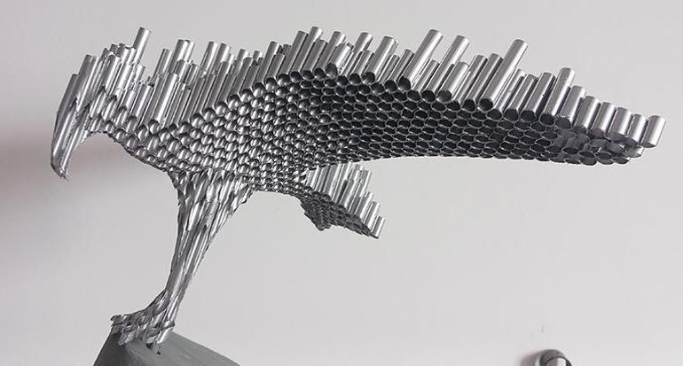 “Zihnimdeki tasarımı önce kara kalem ile çizdim. Ancak heykelin kesim geometrileri çok karmaşık olduğu için bunun bilgisayarda da bir örneğini hazırlamam gerekti. Bu süreçte birçok farklı kartal maketi de aldım. Soyut bir iş yaptığım için gerçeğini görüp onu bozmam lazımdı. Zaten heykelde belli başlı detaylar olmasa kartal olmaktan çıkabilirdi. Yani benim yaptığım iş kartalın kendisi değil, bir temsili. Kartalın gücünü, ataklığını, dinamizmini ve hırçınlığını yansıtacak şekilde çalıştım.