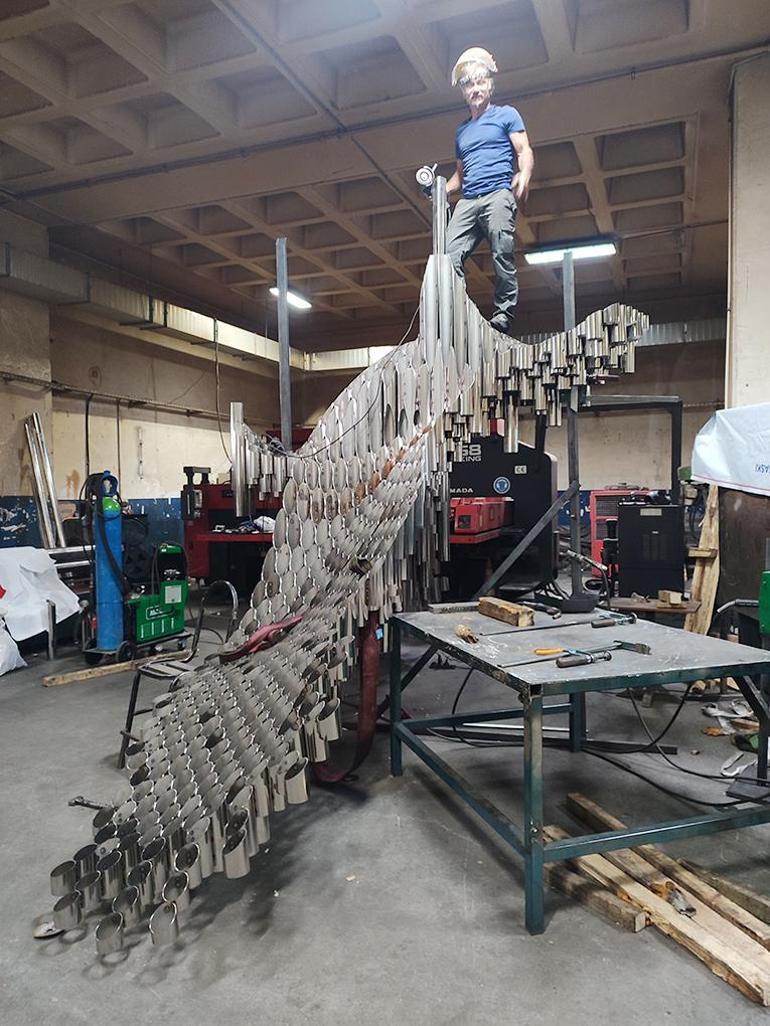 Prof. Dr. Bülent Çınar heykelin tasarım ve yapım aşamasını anlatırken bu heykelin iki ayrı simge barındırdığını belirterek, “heykelde 923 parça bulunuyor. Bu cumhuriyetin kuruluş yılı olan 1923’ü temsil ediyor. 120 derecelik eğim açısı ise BJK’nin kuruluşunun120’nci yılına bir gönderme yapıyor” dedi. Çınar heykelin yapım aşamasını ise şöyle özetledi: