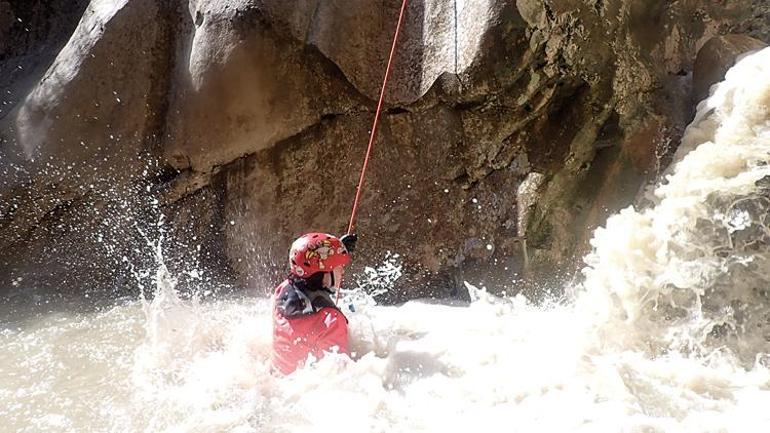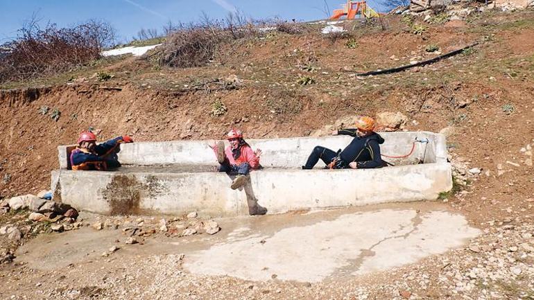 Kanyonda ipli iniş yapmamız gerekiyor. Su soğuk ve yüksek. Islandıktan sonra soğuğu hissetmediğimi fark ediyorum. Bu adrenalinden mi; iki kat giydiğim neopren çoraptan mı; yoksa devamlı hareket halinde olmamızdan mı bilmiyorum. Tecrübesiz arkadaşların güvenli bir şekilde kanyonu geçmelerine yardımcı olmamız gerekiyor. Üşüdükçe şarkılar söylüyoruz. Arada horon oynuyoruz. Şaka maka tam 4 saat buz gibi bir suyun içinde kalıyoruz. Yer yer karlı kanyonun manzarası çok güzel. Daha önce böyle bir deneyim yaşamadım. Çok da uzun olmayan kanyonu bitirdiğimizde çok dik bir yokuşu tırmanmamız gerekiyor. Kanyonu geçmekten daha zor olduğunu itiraf etmeliyim. Kanyonun çıkış noktası da muhtarlığın kahvesi.