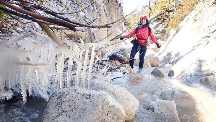 Karlı, buzlu köy yollarından yürüyerek çok uzak olmayan kanyon girişine varıyoruz. Sarkıt buzları görmemle gözlerim faltaşı gibi açılıyor. Bir hayli soğuk sular bizi bekliyor. Aramızda tecrübeli denecek çok az kişi var. Buna rağmen dönmekten ziyade ilerlemek için hepimiz çok hevesliyiz.