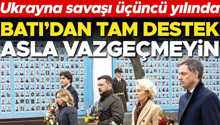 Sosyal medya platformu X üzerinden, Ukrayna halkının olağanüstü direnişini kutlamak için Kiev’de olduğunu söyleyen AB lideri Leyen von der Leyen, “Hiç olmadığı kadar güçlü bir şekilde Ukrayna’nın yanındayız. Mali, ekonomik, askeri ve ahlaki olarak… Ülke sonunda özgür olana dek” ifadelerini kullandı. Leyen ayrıca Brüksel’de bulunan Avrupa Birliği (AB) Komisyonu binasının Ukrayna bayrağı renkleriyle aydınlatıldığı bir fotoğrafı paylaşarak, “Kahraman Ukrayna halkı iki yıldır ülkelerini saldırganlara karşı savunarak şehirleri özgürleştiriyor ve cesurca her şeye meydan okuyor” ifadelerini kullandı.