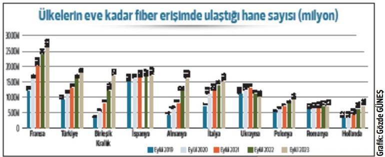 TÜRKİYE, 5G’ye geçiş için kritik öneme sahip fiber altyapıda yakaladığı başarıyla uluslararası arenada dikkatleri üzerine çekti. Fiber bağlantı alanında Avrupa’nın en önemli kuruluşlarından FTTH Avrupa Konseyi’nin ‘FTTH/B Market Panorama in Europe’ raporuna göre Türkiye, eve kadar fiberde 18 milyon hane erişimi ile Avrupa’da ikinci sırada yer aldı. Bir önceki yıl üçüncüyken, 2023’te ikinciliğe yükselen Türkiye, İngiltere, İspanya, Almanya ve İtalya gibi ülkeleri geride bıraktı ve ilk sıradaki Fransa’ya da bir adım daha yaklaştı. Türkiye aynı raporda FTTH/B (eve kadar fiber) abone sayısındaki artışla da Fransa ve İspanya ile birlikte ilk 3 Avrupa ülkesi içinde yer aldı. Nüfusuna ve zorlu coğrafi şartlara rağmen zirveye oynayan Türkiye, ulaştığı rakamlarla iddiasını ortaya koydu.
