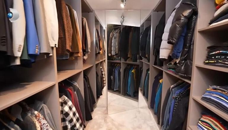 Üç katlı villanın bir odası kıyafetler için ayrılırken diğer oda da küçük bir spor salonu yer alıyor.