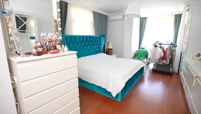 Ünlü sanatçı yatak odasını ise olabildiğince sade tasarlamış. Yatağını renklendiren Üren koşu bandını da odasında kullanıyor.