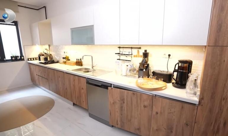 Evin mutfağında da beyaz ve kahve tonları ön plana çıkıyor. Ev işlerinden anlamadığını söyleyen Mehtap bu yüzden mutfakta çok az zaman geçiriyor.