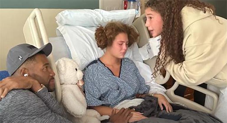 Isabella’nın en büyük destekçileri babası Michael Strahan ile ikiz kardeşi Sophia. Onu hastane odasında bir an bile yalnız bırakmıyorlar.