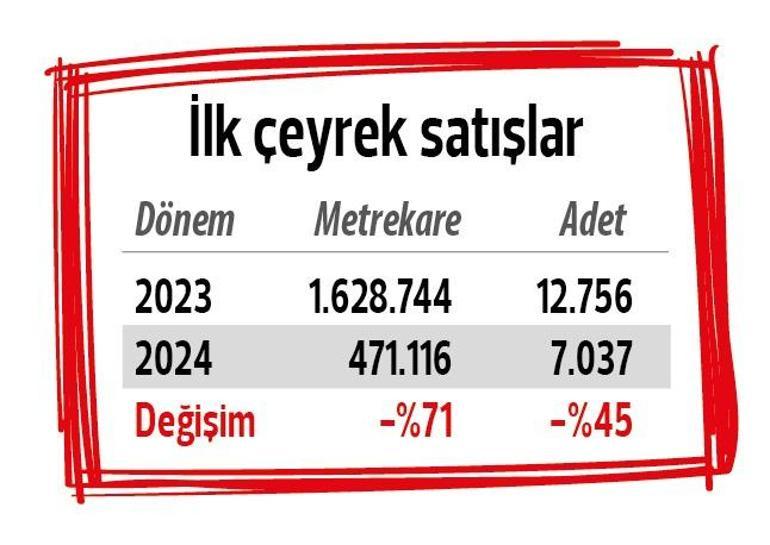 Tapu ve Kadastro Genel Müdürlüğü, Yabancı İşler Daire Başkanlığı verilerine göre; 2023 yılı ilk 3 ay sonunda 1 milyon 628 bin 744 metrekare olan yabancıların gayrimenkul edinimleri, 2024 yılı aynı döneminde yüzde 71 azalarak 471 bin 116 metrekare oldu. Yine 2023 ilk çeyrekte 12 bin 756 adet olan alım sayısı, bu yıl ilk çeyrekte yüzde 45 azalarak 7 bin 37’ye geriledi. Konut satışı özelinde ise TÜİK tarafından açıklanan verilere göre; adet bazında, 2024 ilk 3 ayı itibariyle Türkiye genelinde, toplam 5 bin 685 adet konut satıldı. 2023 yılının aynı dönemine göre yüzde 48 düşüş görüldü.