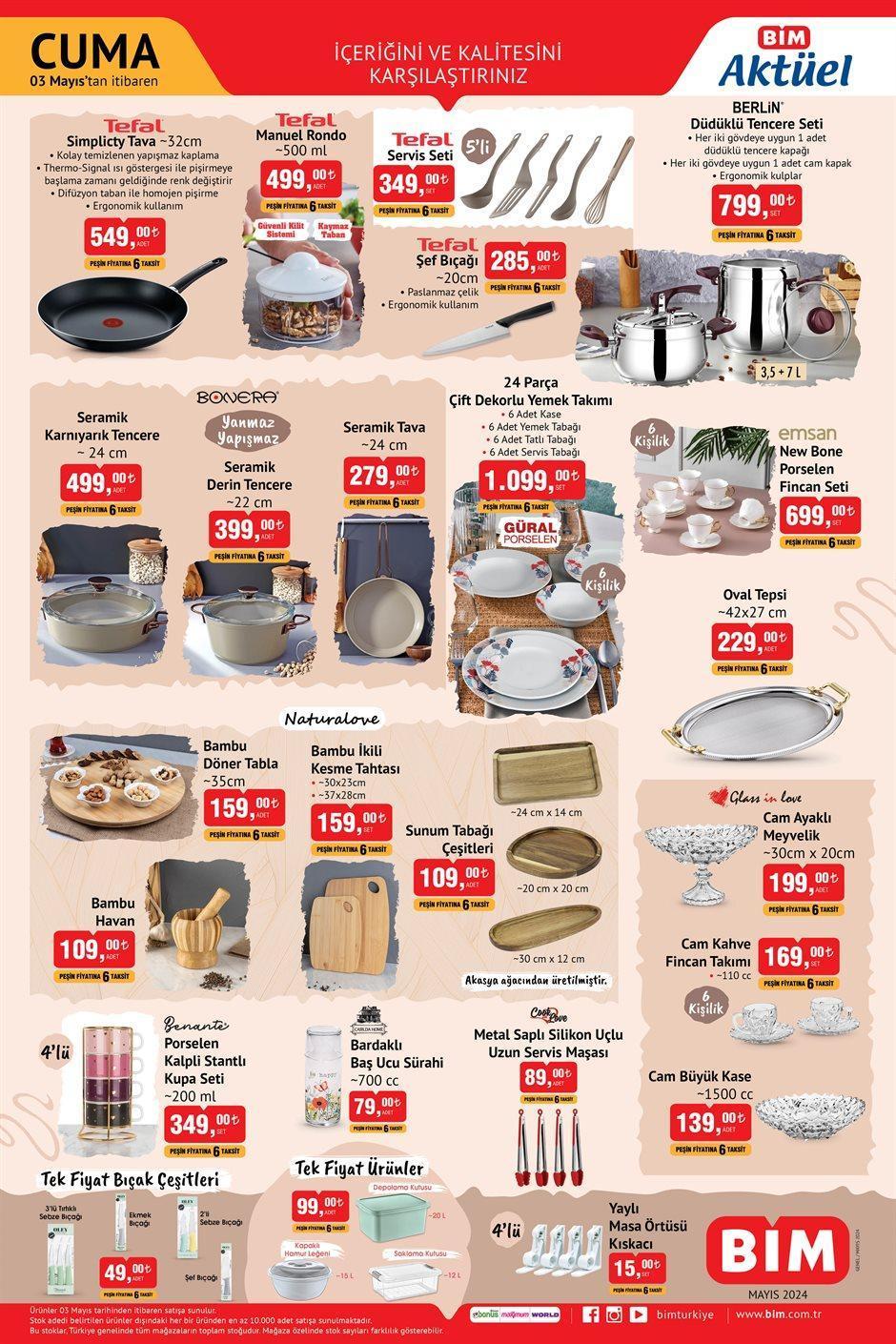 Bim aktüel 30 Nisan 2024 kataloğu salı günü raflarda yerini alacak. Aynı zamanda BİM aktüel 3 Mayıs 2024 kataloğu da yayımlandı. Bim’de bu hafta cuma elektronik ev aletleri, mutfak eşyaları, ev tekstili ürünleri ve bahçe ürünleri yer alıyor. Bim’in ürünleri aynı zamanda bim online alışveriş sitesi bim.com.tr adresinden de temin edilebiliyor. Bim aktüel 3 Mayıs 2024 kataloğu ile ; Heifer Saç Kurutma Makinesi 379 TL, GESKE 6’sı 1 Arada Yüz Temizleme Fırçası 3.499 TL, Polosmart Smart Tartı 329 TL, Kumtel Çift Cam Davlumbazlı Beyaz Turbo Cam Ankastre Set 7.299 TL, 4 Kapaklı Bölmeli Çok Amaçlı Dolap 1.599 TL’den satışta olacak. Peki, Bim’de bu hafta neler var? İşte, BİM aktüel ürünler kataloğu 30 Nisan- 3 Mayıs 2024!