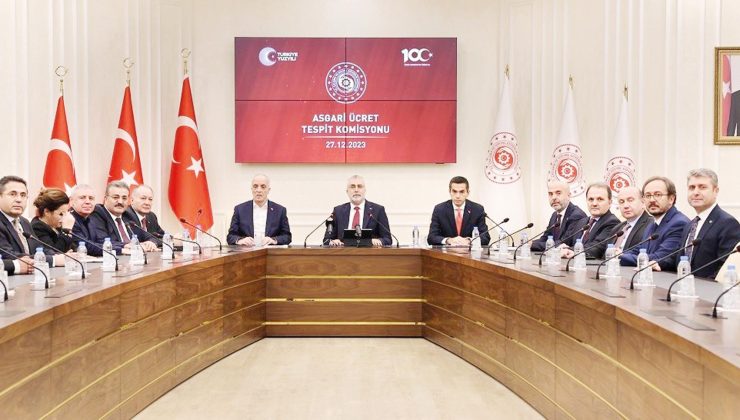 ÇALIŞMA ve Sosyal Güvenlik Bakanı Vedat Işıkhan, asgari ücretin 17 bin 2 lira olduğunu açıkladı. Böylece asgari ücrete yüzde 49 zam yapılmış oldu. Her asgari ücretli için de devletin işveren ödediği 500 TL’lik destek 700 TL’ye çıkarıldı. Karara muhalefet şerhi koyduklarını belirten Türk-İş Genel Başkanı Ergün Atalay, “Talebimiz 18 bin liraydı” dedi. TİSK Genel Başkanı Özgür Burak Akkol ise işletmelere ilave adım çağrısı yaparak, ”Hedefimiz ortalama ücretin artması olmalıdır. Bu sebeple belirlenen rakamın üzerine çıkma imkânı olan işletmelerimize ilave atılabilecek adımları da atma çağrısında bulunmak istiyorum” ifadelerini kullandı.