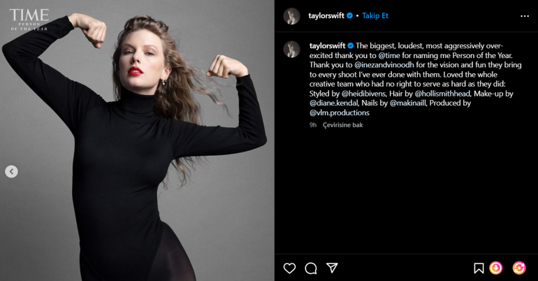 Taylor Swift, Time dergisi tarafından 2023’te “Yılın Kişisi” seçildi… Yılı büyük başarılarla kapatan ünlü şarkıcının yeni filizlenen ve hızla ilerleyen aşkı ise senenin en çok konuşulan olaylarından biri oldu